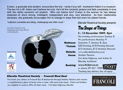 “Clever, uncomfortable and brilliantly staged, The Shape of Things leaves the audience with much to talk about”. Brian Clover, Curtain Up
