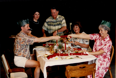 Joyful & Triumphant written by Robert Lord directed by Cynthia Cahill-Smith 25 September to 5 October 1996 Cast Dad - George Bishop Rex Steele Mum - Lyla Bishop Val Hemphill Rose Bishop Margarita Green Ted Bishop Garry Stewart Brenda Bishop Jan Cosslett Raewyn Bishop Sonia Waller Alice Bishop Margaret O'Shea